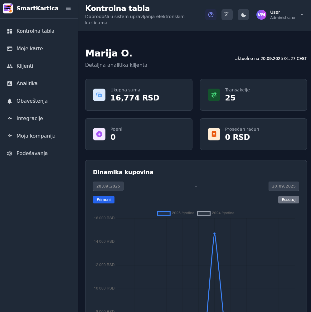 Prednost analitike u SmartKartica.rs je u jednostavnosti i dostupnosti. Podaci se osvežavaju u realnom vremenu, interfejs je jasan, a rezultati olakšavaju donošenje brzih i tačnih odluka. Na srpskom tržištu to znači veću konkurentsku prednost za firme koje koriste analitiku.